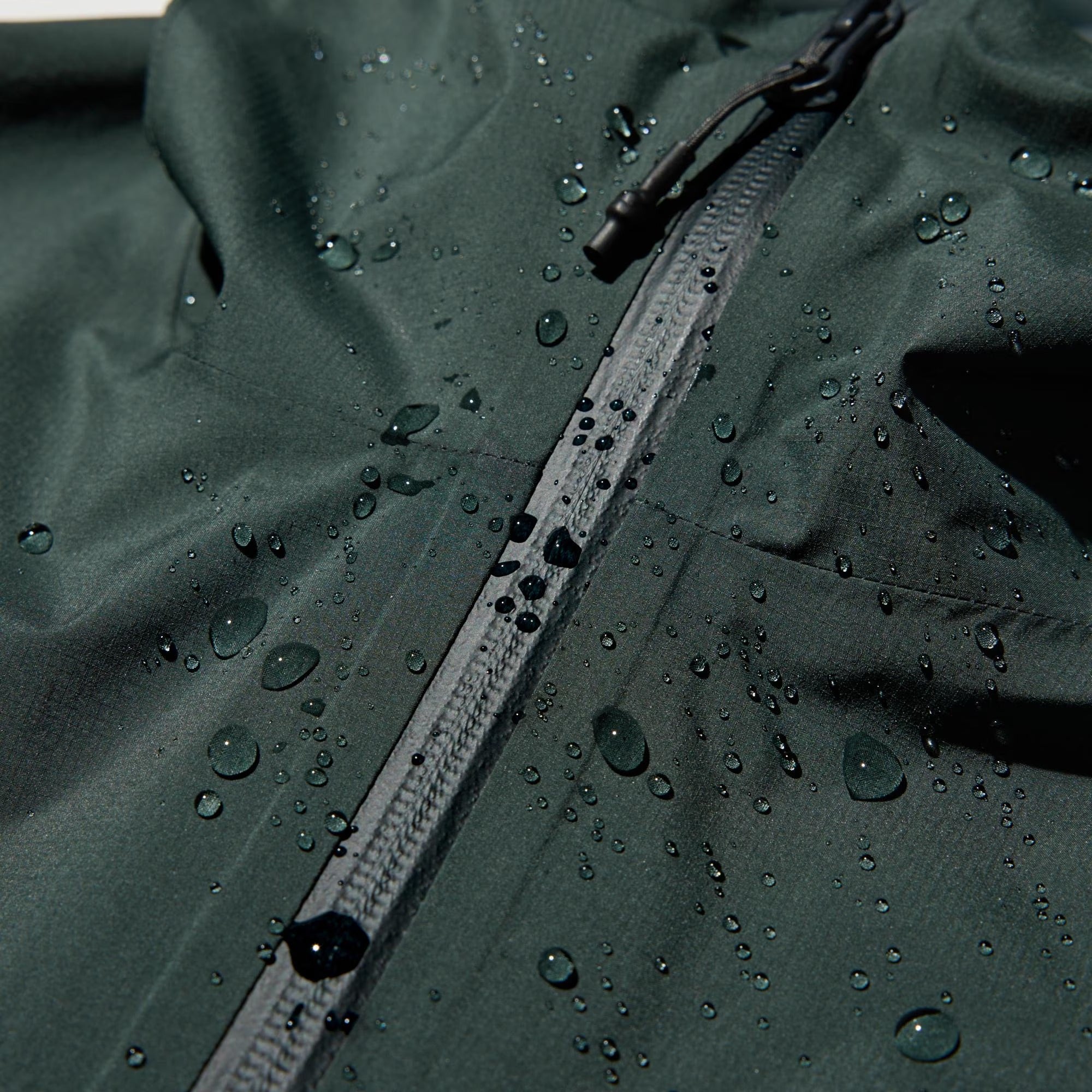 Windproof and water-repellent fabric. Water-repellent finish protects against light rain. *The fabric is coated with a water-repellent agent so the effect lasts longer. The finish is not permanent. Designed with a waterproof fastener at the front and hip pockets to keep water out. *The fabric is not completely waterproof.